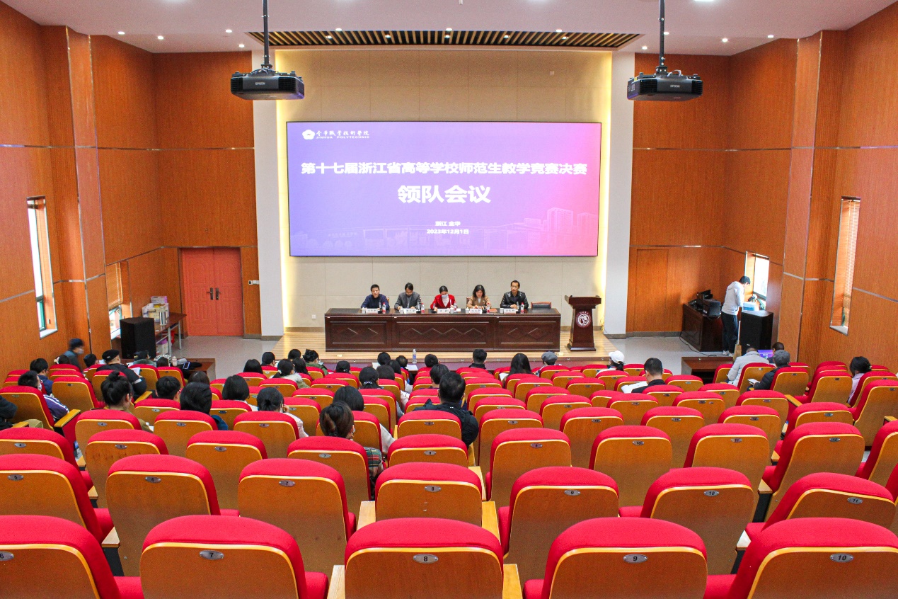 12月1日 ,领队会议在西教二银杏厅举行。赛事秘书处单位浙江师范大学教务处处长陈敏、副处长李慧军,金华职业技术学院教务处、师范学院相关负责人出席了领队会议并讲话。