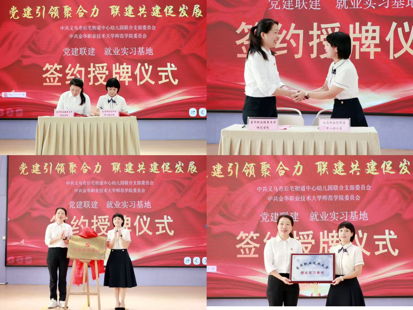 党建联建|金职大师范学院与义乌市后宅中心幼教集团举行党建联建、访企拓岗、就业实习基地签约授牌仪式
