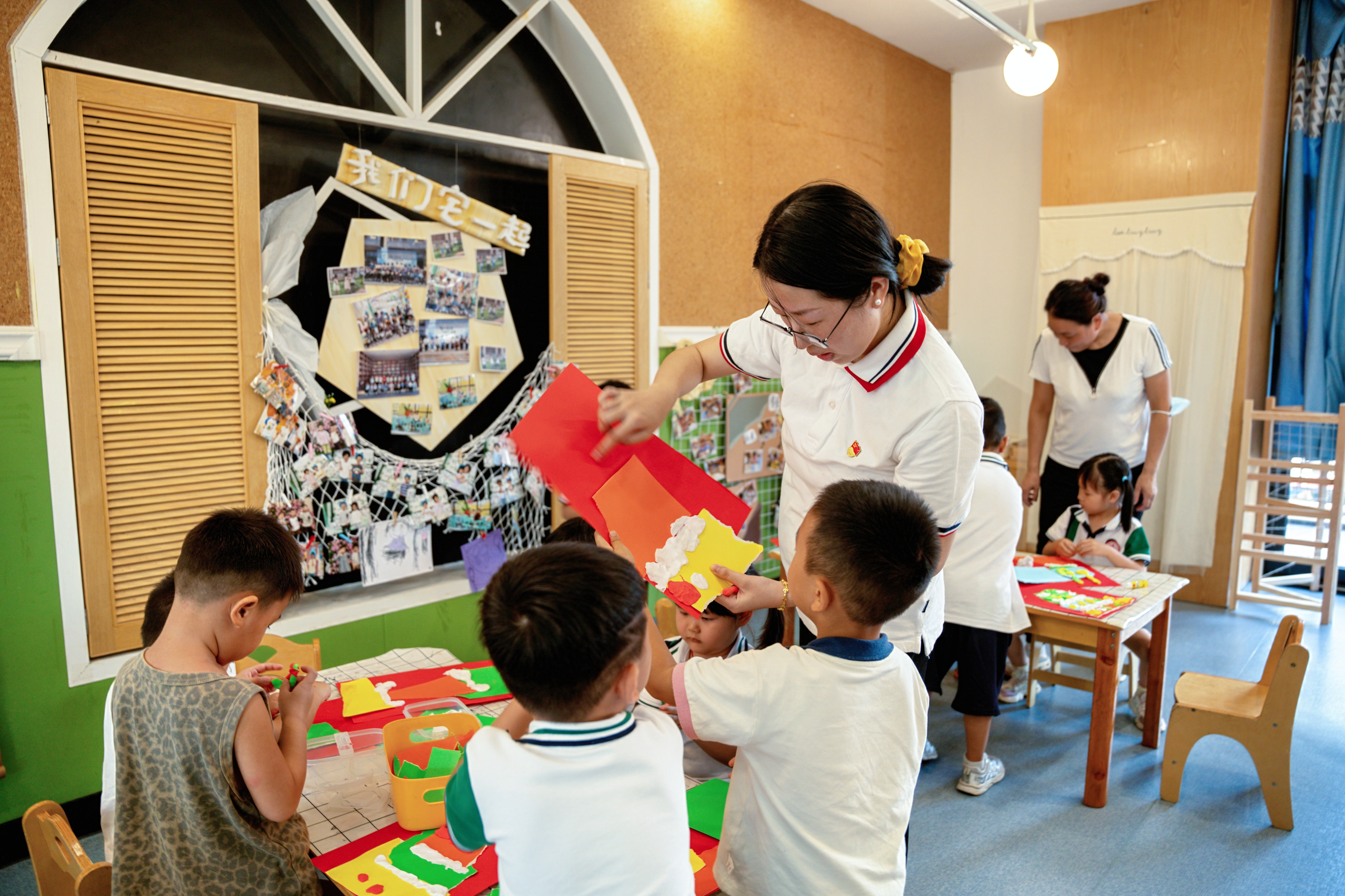 金华职业技术大学师范学院附属幼儿园党支部的教师党员们带来了许多生动有趣的活动,师生党员与各年龄段幼儿分组创作,书香与童趣在此碰撞。小班幼儿用稚嫩的小手进行“童心‘粘’满中国红”手工活动,感受喜庆氛围。中班孩子则为“祖国妈妈过生日”精心制作礼物,充满温情。大班的“刮蜡画:烟花绽放迎国庆”则展现了孩子们对节日绚烂场景的想象。
