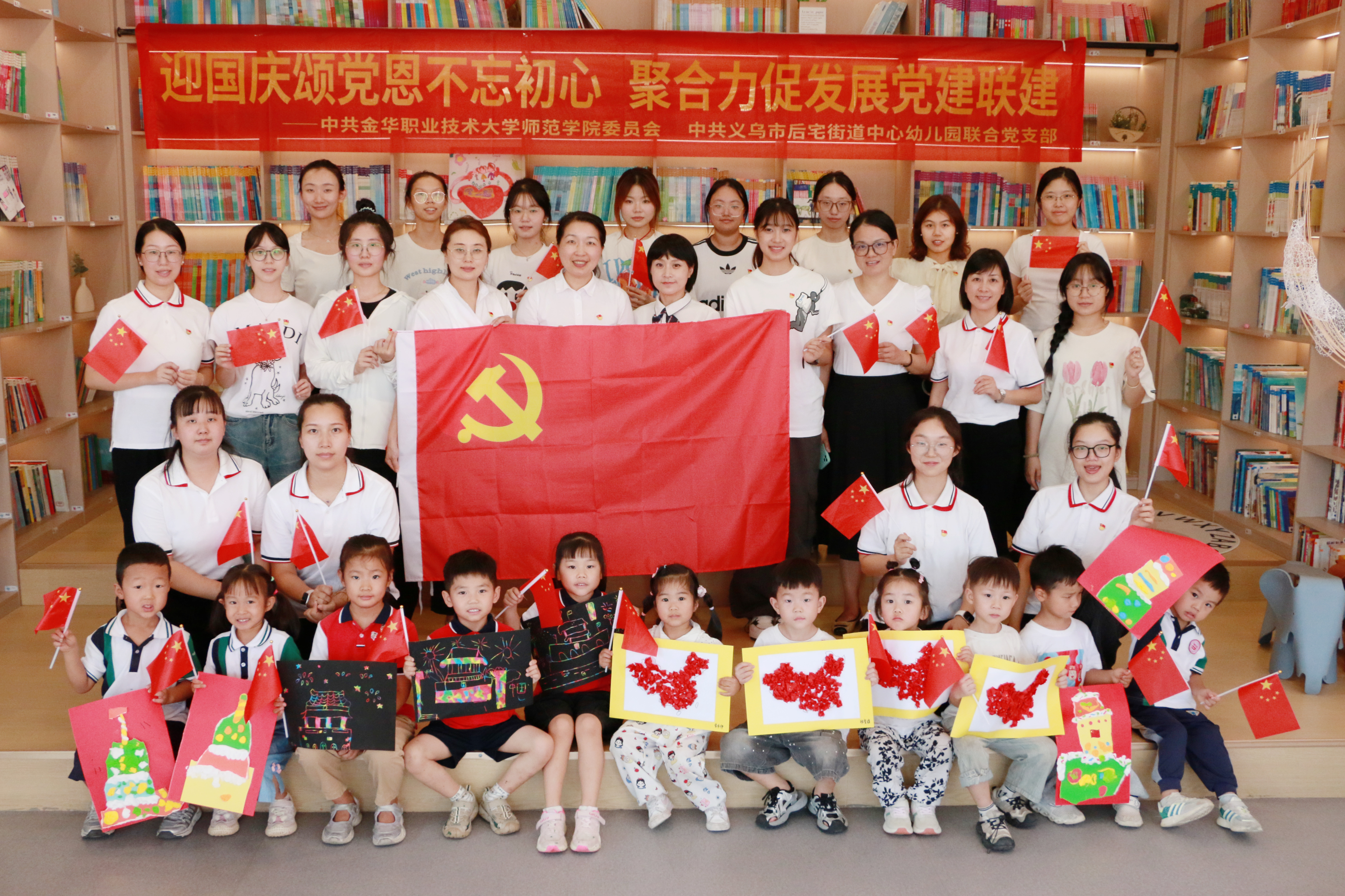 9月28日下午,金华职业技术大学师范学院与义乌市后宅中心幼教集团党建联建签约暨“迎国庆・颂党恩・话初心”主题活动圆满举行,双方以党建为红色纽带,以文化为桥,串联起校地党建与幼儿红色教育,开启了“资源共享、协同育人”的崭新篇章,共同描绘幼教事业高质量发展的美好蓝图。金华职业技术大学师范学院党委副书记(主持工作)林雪华、义乌市后宅街道中心幼儿园园长吴微笑及双方师生党员代表共同出席了本次活动。