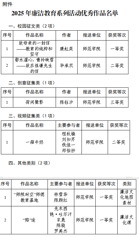 喜报!师范学院师生喜获2025年廉洁教育系列活动多项奖项