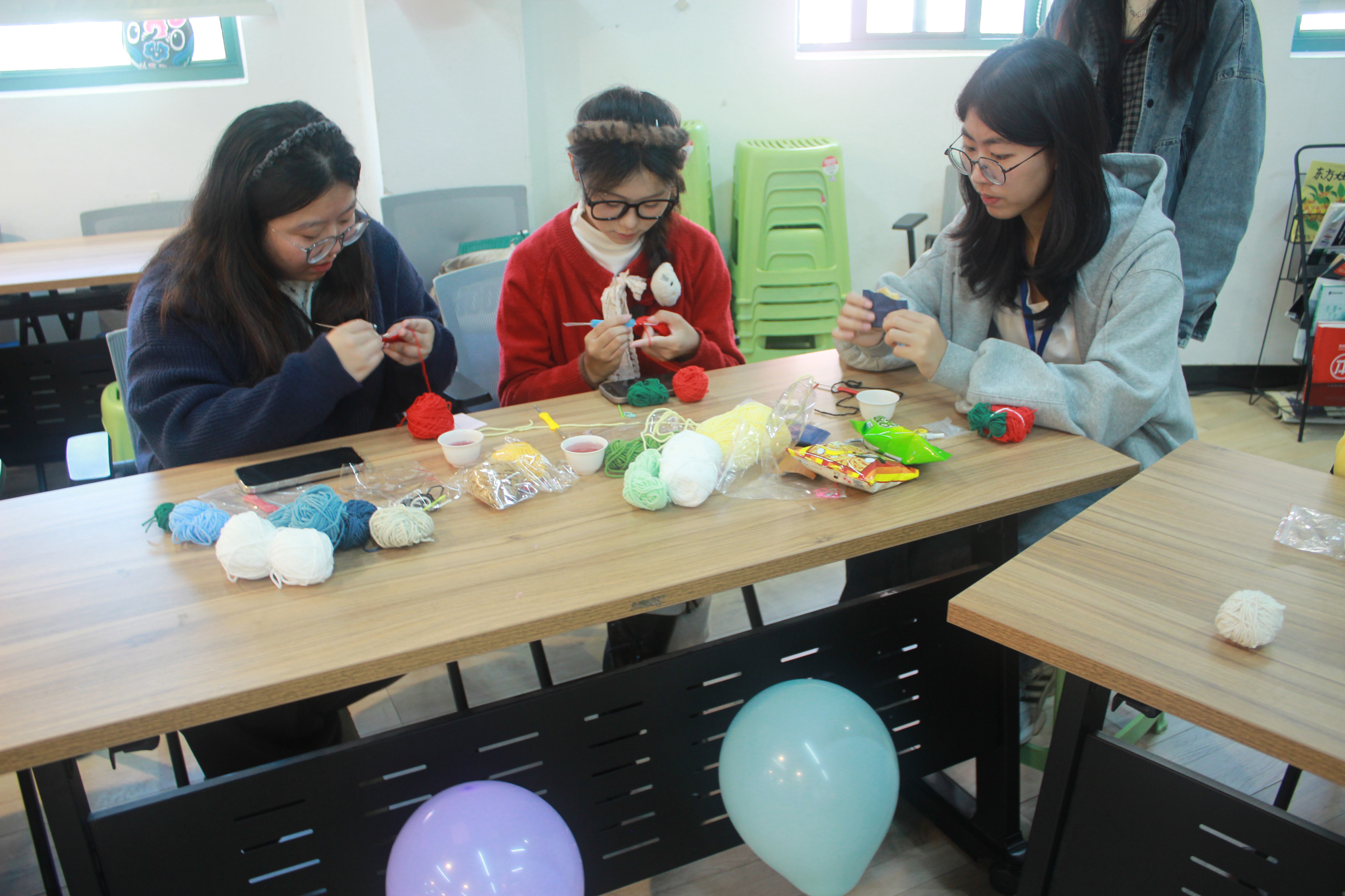 在“茶语心声·邻里茶话会”环节,同学们在“解忧便笺”上写出关于学业与生活中的困惑,彼此倾听、相互建言,既有真诚的建议,也有贴心的安慰;在“针藏暖意·针织茶垫DIY”环节,同学们手中的毛线化身为传递情谊的纽带,熟练的同学主动示范钩织技巧,初学的同学则认真观摩,虚心求教。一针一线之间,不仅编织出一个个精美实用的茶垫,更编织出浓浓的同学情谊;在“茶韵拼贴·时光卷轴”环节,大家用彩笔描绘校园生活的美好瞬间,用贴纸拼接出理想的校园生活图景。这幅凝聚着集体智慧的卷轴,不仅封存了美好时光,更见证了同学们在“一站式”学生社区中结下的深厚情谊;在“茶香盲盒·邻里情谊”环节,同学们将亲手制作的茶垫、亲笔书写的祝福卡以及精心准备的校园文创礼物装入盲盒,通过随机抽取的方式互相赠送。每一份礼物虽不贵重,却因“亲手制作”而显得格外珍贵。