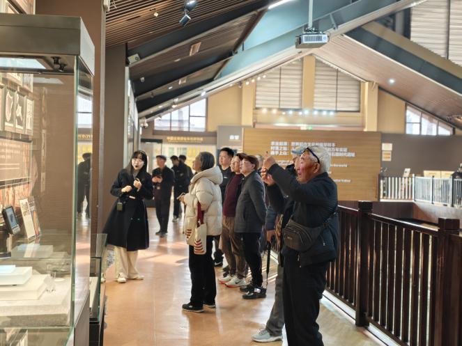 下午,老教师们参观了上山遗址博物馆,这是一处距今一万年左右的新石器时代早期文化遗址,曾出土一万年前的栽培稻遗存,也是目前发现最古老的人工水稻。在这里,老教师们领略了“远古中华第一村”的独特魅力,感受了万年稻作文明的深厚底蕴。接着,老教师们走进新光村,实地观摩新农村建设成果,体验乡村振兴的生动实践;漫步于诗人小镇,在浓郁的文化氛围中赏景抒怀;前往北乡农民革命纪念馆,实地感受浦江历史上第一个中国共产党领导的支部(中共沈家村党支部)的革命历史,了解黄玠然等早期共产党人将生命熔铸于革命事业的不朽人生。在潘周家,老教师们观看了非物质文化遗产“一根拉面”的制作工艺,参观了潘周家古建筑群,并品尝了地道的农家风味,亲身感受到浦江非遗文化与乡村美食的独特魅力。