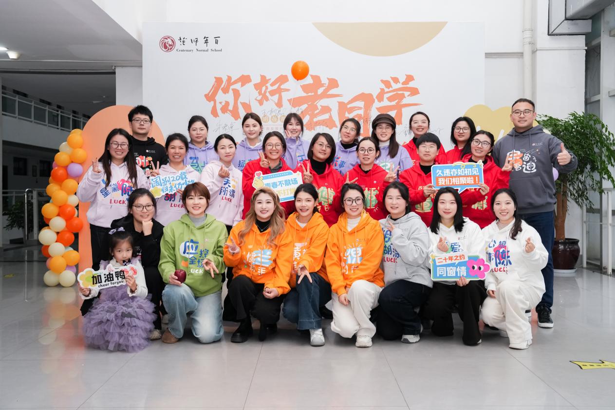 活动伊始,一句句“好久不见”瞬间拉近了彼此的距离。筹备组精心准备的定制卫衣、保温杯、帆布袋一经亮相便吸粉无数——卫衣上的姓名谐音梗别具匠心:“龚”候佳音、扬“芳”启航、“黄”道吉日;保温杯上雕刻着专属纪念日;帆布袋上印有“百年师范”的印记。每一件周边都藏着专属回忆,让同学们直呼“细节满满,太用心了!”