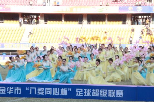 2026年3月14日,金华职业技术大学师范学院舞蹈团应金华市体育局、金东区文化馆邀请,参加金华市“八婺同心杯”足球超级联赛终场表演。