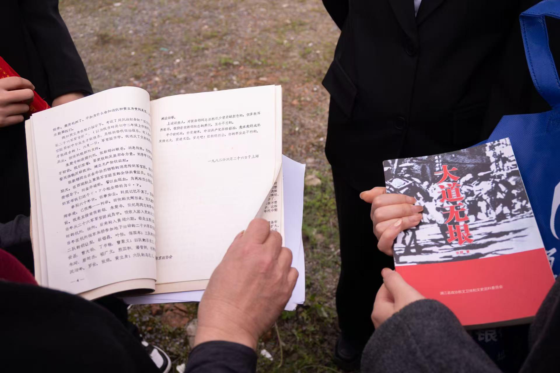 清明将至,翠柏凝思。4月2日,金华职业技术大学师范学院师生赴金华市浦江县岩头镇,开启“清明祭英烈 薪火传师魂”——“行走的思政课”主题活动。此行有一位特殊的同行者——张新锦烈士的孙女张雪君。她与年轻学子们一起,轻轻打开泛红的家书,一字一句,读给那个从未远去的亲人。