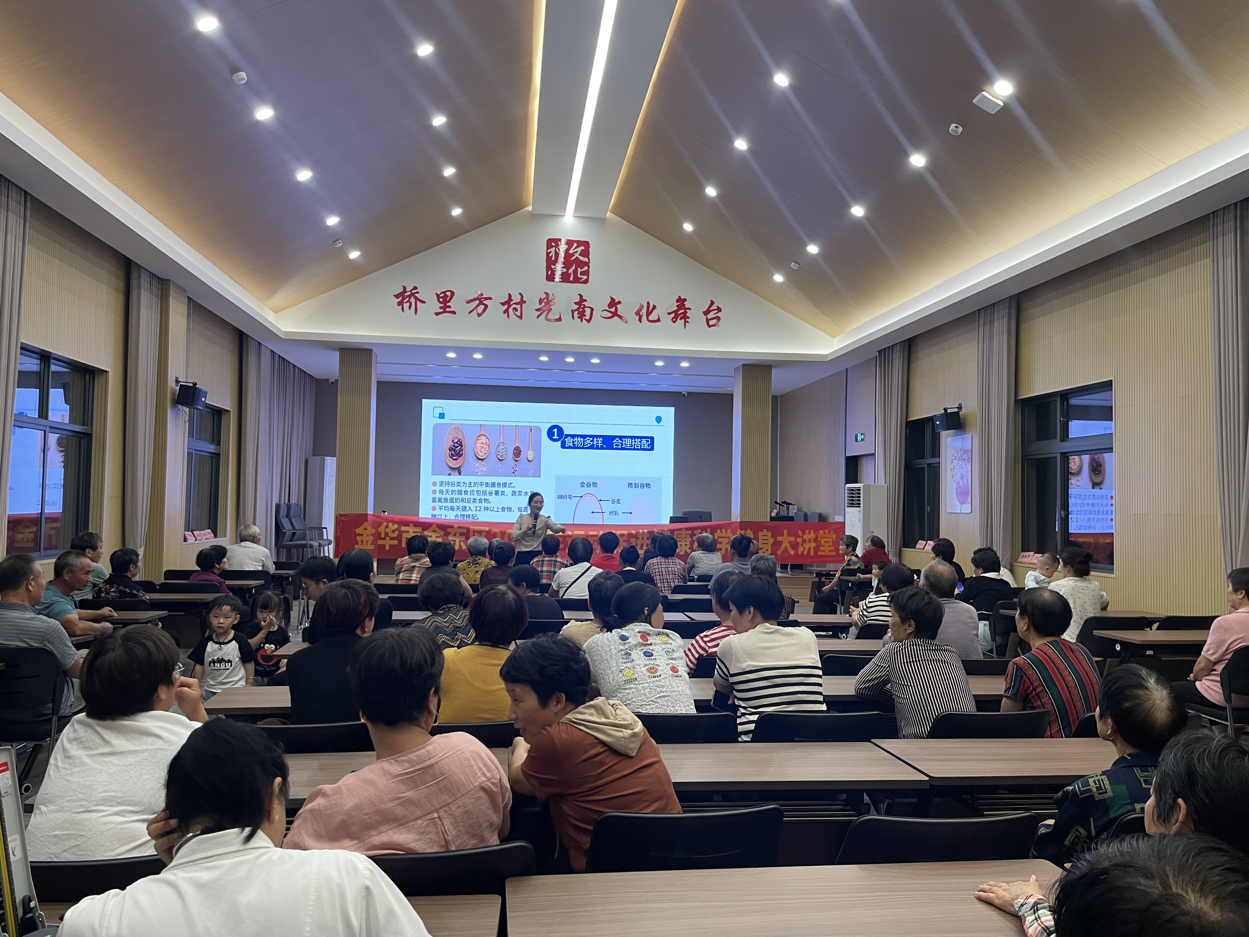 为广泛传播健康生活理念和深化科学健身认知,提升城乡居民科学健身素养,9月25日下午,金东区运动促进健康科学健身大讲堂(第七期)活动走进赤松镇桥里方。此次活动以“饮食营养与运动锻炼”为主题,将科学的饮食和运动的方式传播到乡村百姓的身边,提升他们的健康水平。