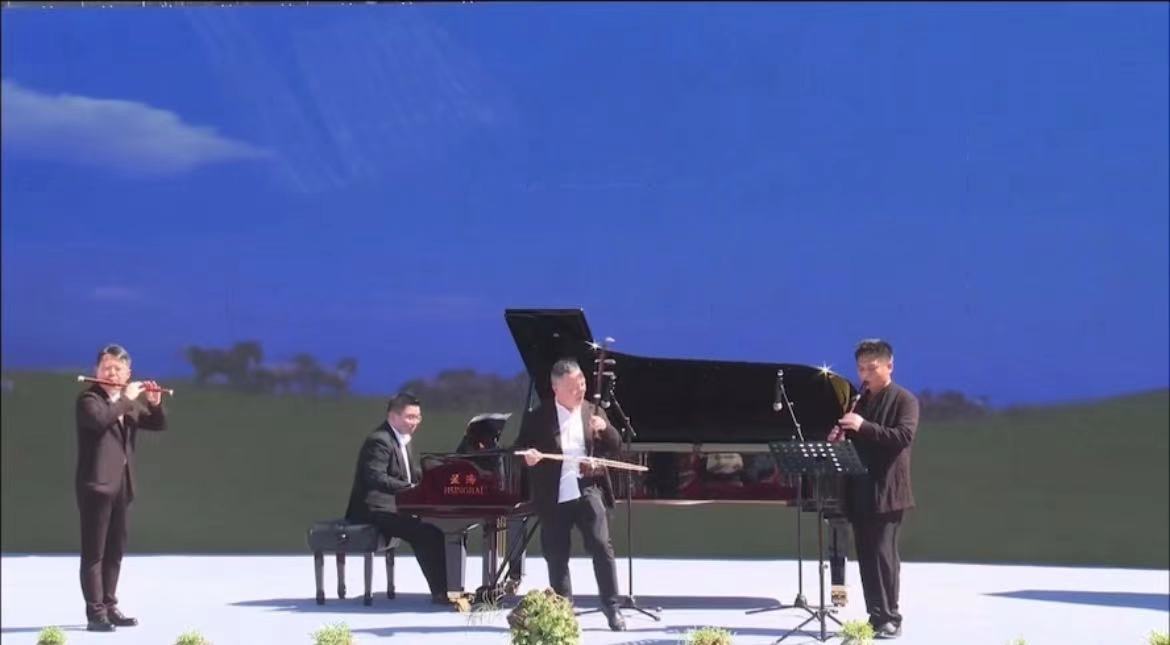 “中华仙草.灵秀太平——霍山石斛产业助力乡村振兴活动”在大别山腹地、“中国石斛小镇”霍山县太平畈乡石斛广场举行。此次活动由霍山县农业局、文旅体局主办,太平畈乡人民政府主办,中国农业电影电视中心《乡村大世界》栏目进行全网直播。此次活动旨在通过多方合作,推动霍山石斛产业发展,为乡村振兴注入新的活力。为提高文艺演出活动质量,丰富活动形式,特邀请音乐文化教学部几位教师积极参与其中,充分发挥自身专业优势,带去了器乐合奏《赛马》和舞蹈表演《米斛花开》两个节目,教师们精彩的表演赢得了现场观众的热烈掌声,大大提升了本次活动的表演水准。同时,由师范学院音乐文化教学部教师杨松权作词、安徽艺术学院李传兴作曲、青年歌唱家庄云龙演唱的村歌《畈上太平》也在本次活动中压轴亮相。现已由央视网、农视网等多家央视平台发布,目前浏览量已突破71万,引起当地广泛关注。