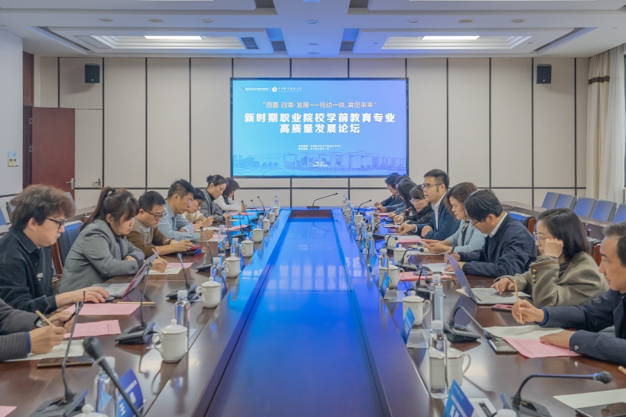 为进一步推进全国托幼行业产教融合共同体工作,共同探讨学前教育专业的高质量发展,10月26日上午,师范学院在学校明理会议室举行主题为“质量 改革 发展——托幼一体,育见未来”的新时期职业院校学前教育专业高质量发展论坛,来自全国20个省30余所高职院校学前教育专业的领导、老师以及全国托幼行业产教融合共同体理事长单位幼乐美(北京)教育科技有限公司的30余人参加论坛。会议由师范学院负责人主持。