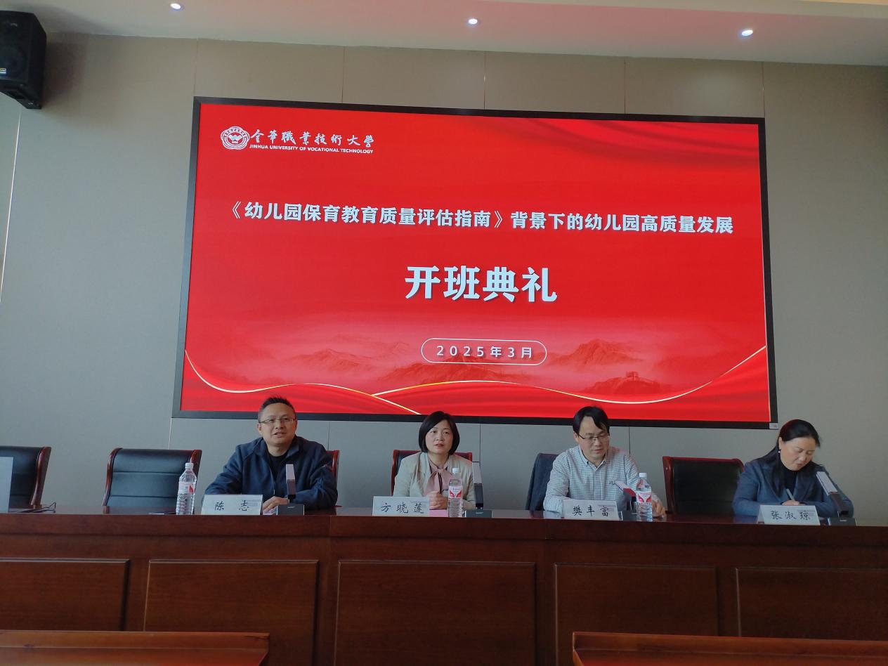为深入贯彻落实《幼儿园保育教育质量评估指南》,推动学前教育高质量发展,近日,由金华市教育局与金华职业技术大学联合主办的 “《幼儿园保育教育质量评估指南》背景下的幼儿园高质量发展培训” 开班典礼在金华职业技术大学隆重举行。金华市教育局基教处处长方晓莲、金华职业技术大学师范学院院长樊丰富、副院长陈志及相关负责人出席开班典礼,来自金华各县市的幼儿园园长、骨干教师65人参加了开班典礼,开班典礼由师范学院副院长陈志主持。