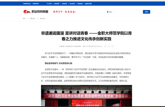 中国教育在线:非遗邂逅国漫 宣讲对话青春 ——金职大师范学院以青春之力推进文化传承创新实践