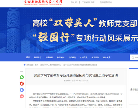 全国高校思想政治工作网:师范学院学前教育专业开展访企拓岗与实习生走访专项活动