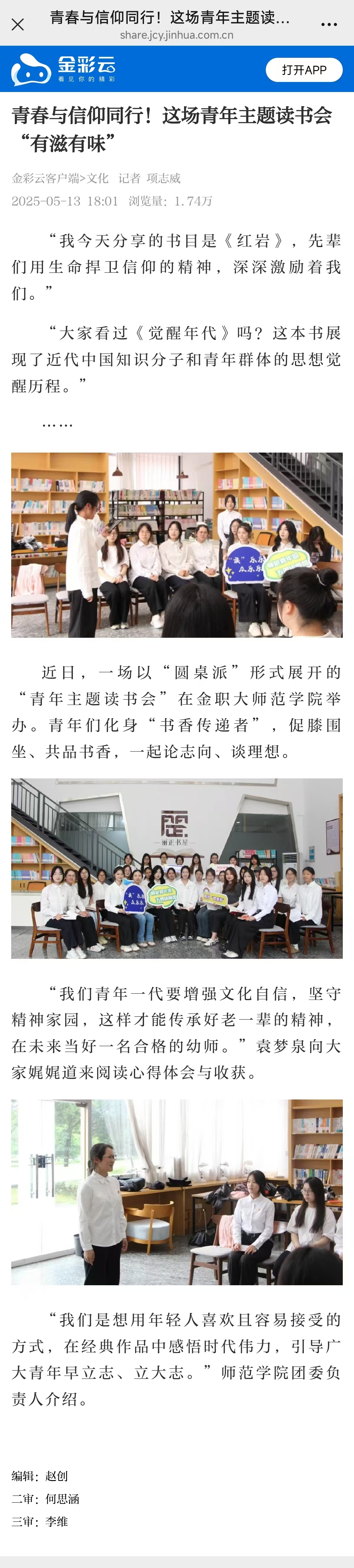 金彩云:青春与信仰同行!这场青年主题读书会“有滋有味”