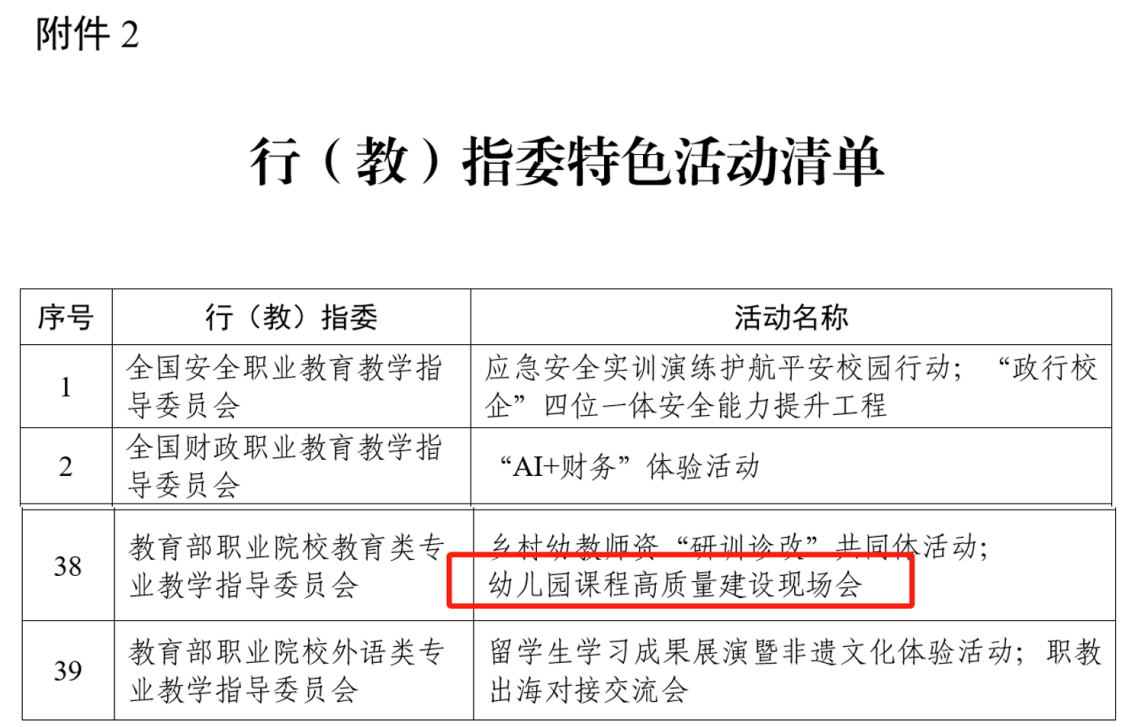 近日,《教育部等九部门关于办好2025年职业教育活动周的通知》发布, 2025 年职业教育活动周于5月11日至17日在全国范围内举办。我校师范学院申报的“幼儿园课程高质量建设现场会”由教育部教育类专业教指委推荐,入选行业领域特色活动。