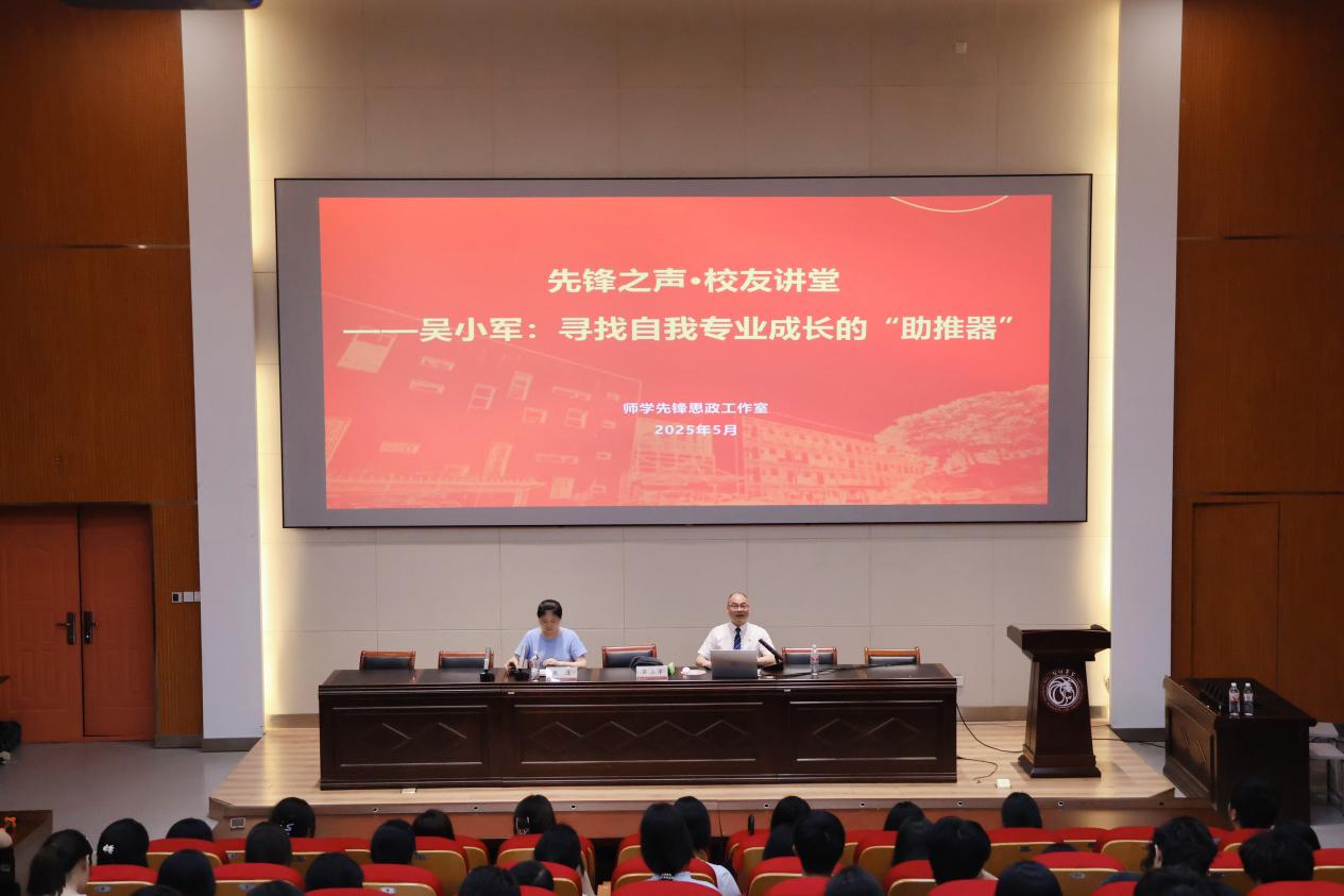 为切实提高师范学子专业能力,帮助师范学子明确自身成长方向,5月20日晚6:30,一场以小学教师专业成长为核心的主题讲座于西二-416召开。学院91届校友、全国优秀班主任、金华市荣光学校党总支副书记吴小军以《寻找自我专业成长的“助推器”》为题开讲,吸引了众多师范学子到场聆听。