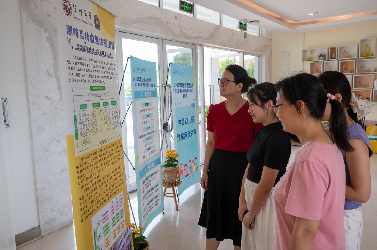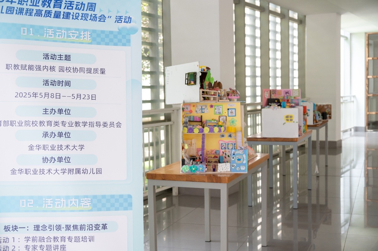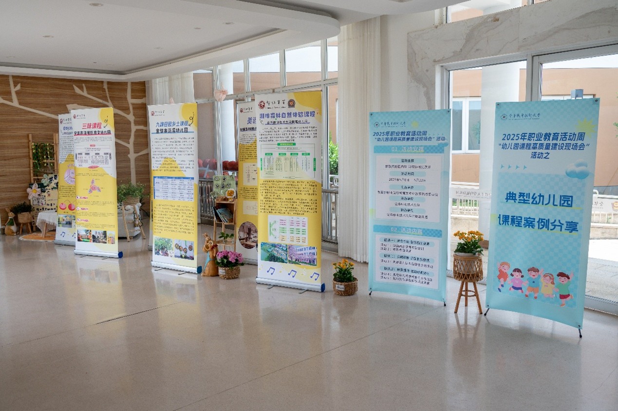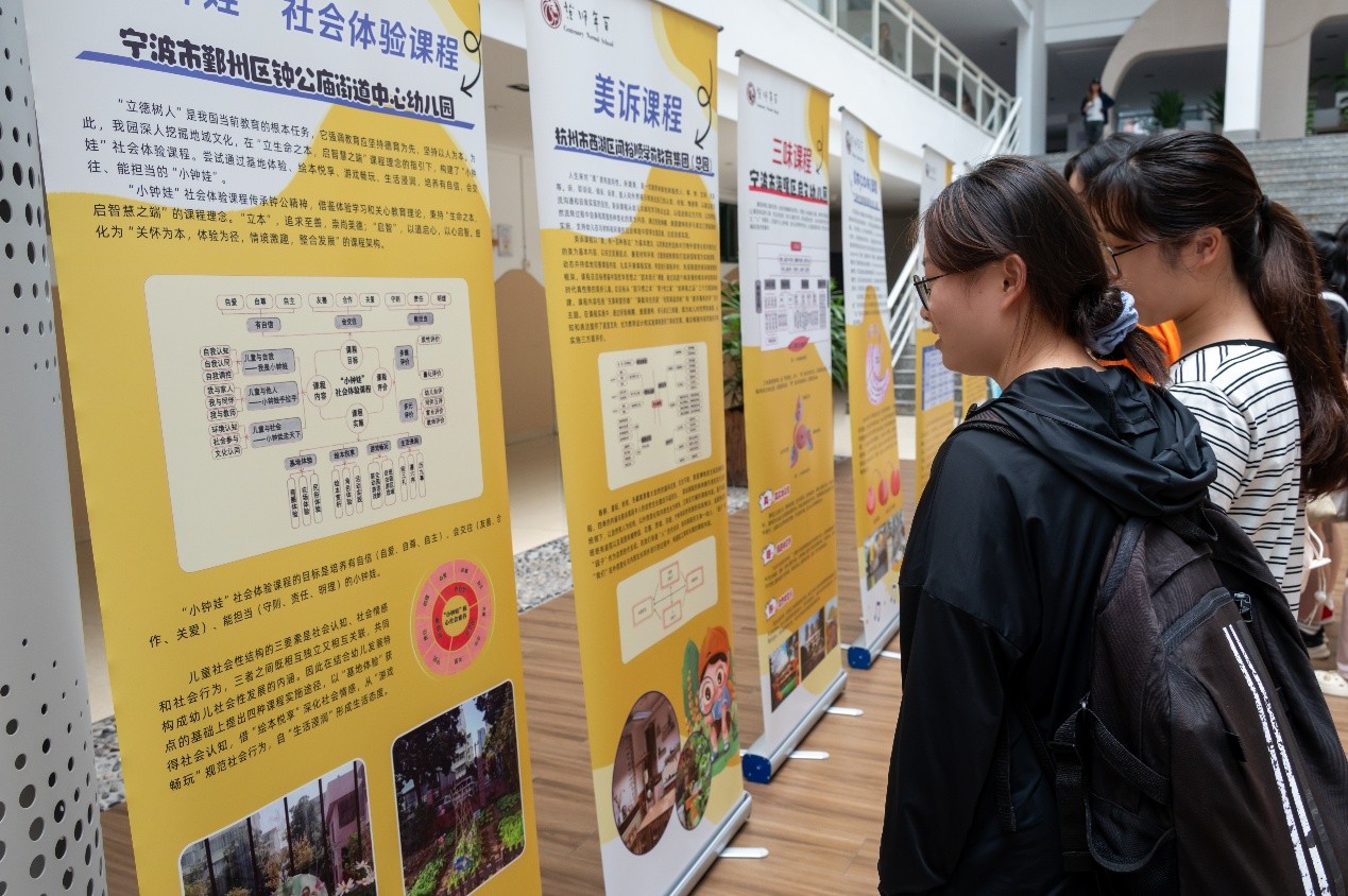 活动期间,金华职业技术大学师范学院教学楼及附属幼儿园门厅集中展示了六个来自区域内优质园所的园本课程方案,全面呈现了当前幼儿园课程建设方面的多元探索与在地实践。