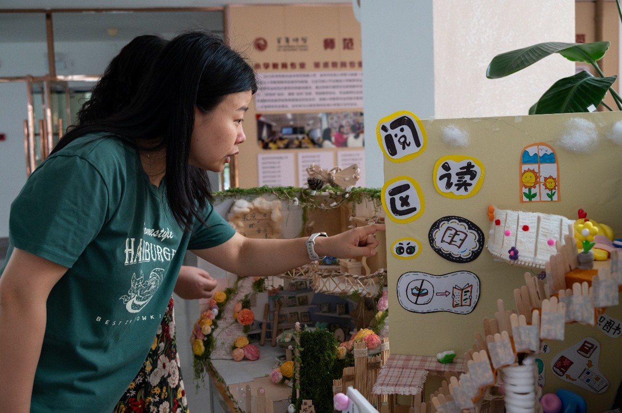 在“0—3岁婴幼儿教养环境创设之区域环境创设作品展”中,学生作品错落有致,每一个区域不仅体现发展适宜性,更蕴含教育意图。参观教师纷纷驻足拍照交流,称赞这些作品“既有审美力,更有教育性”。