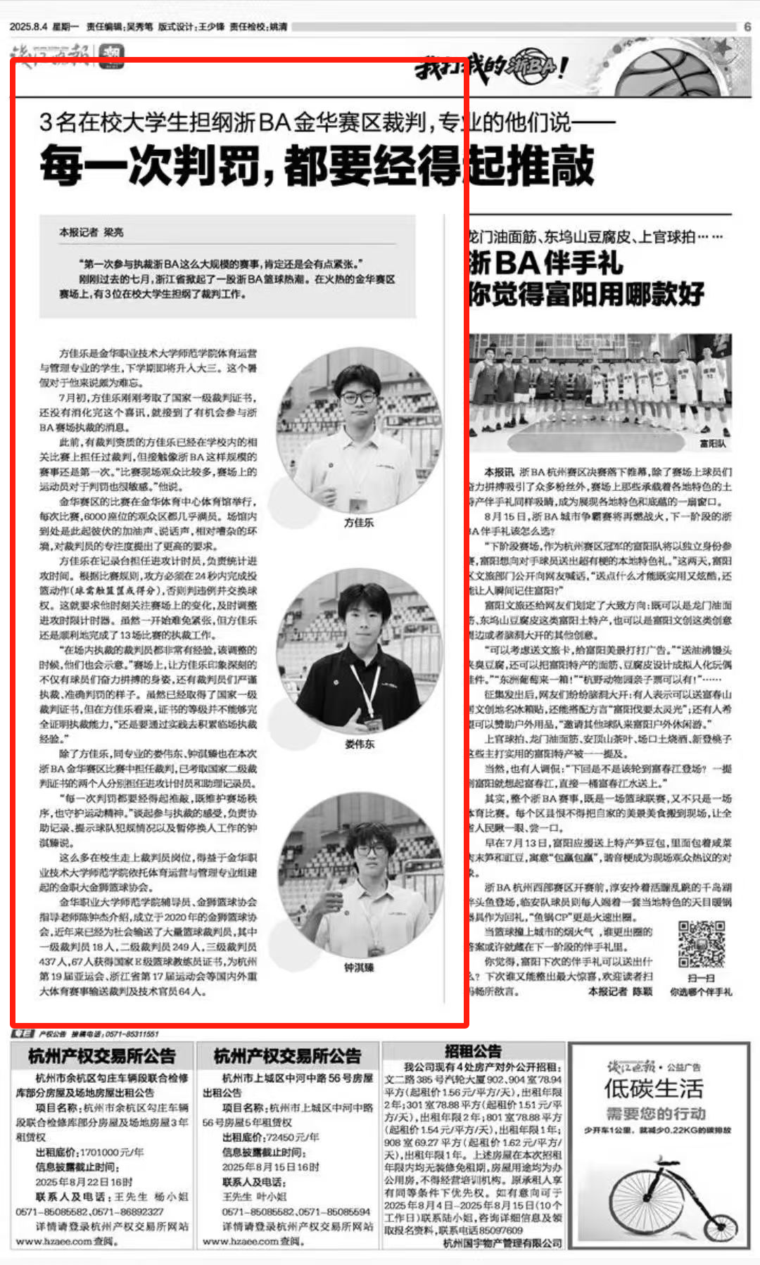 钱江晚报:3名在校大学生担纲浙BA金华赛区裁判,专业的他们说-每一次判罚,都要经得起推敲