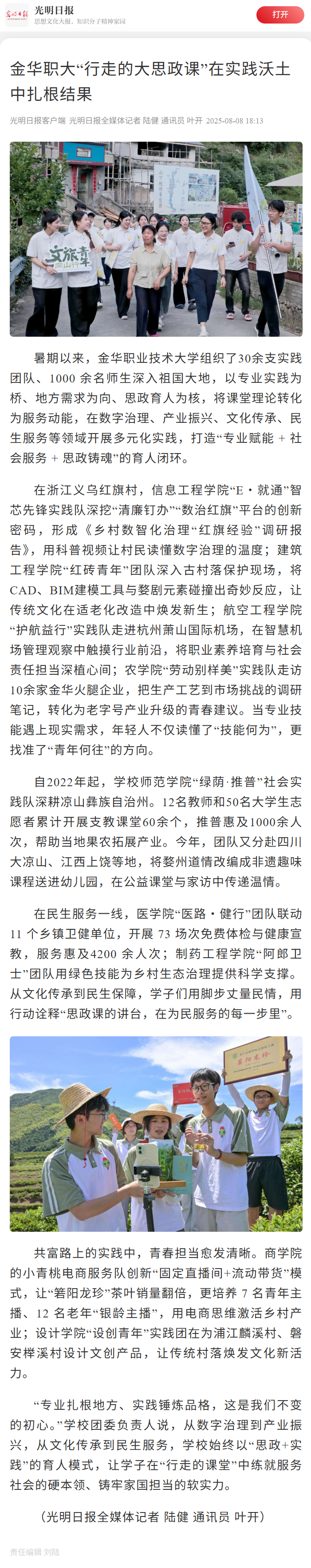光明日报:金华职大“行走的大思政课”在实践沃士 中扎根结果