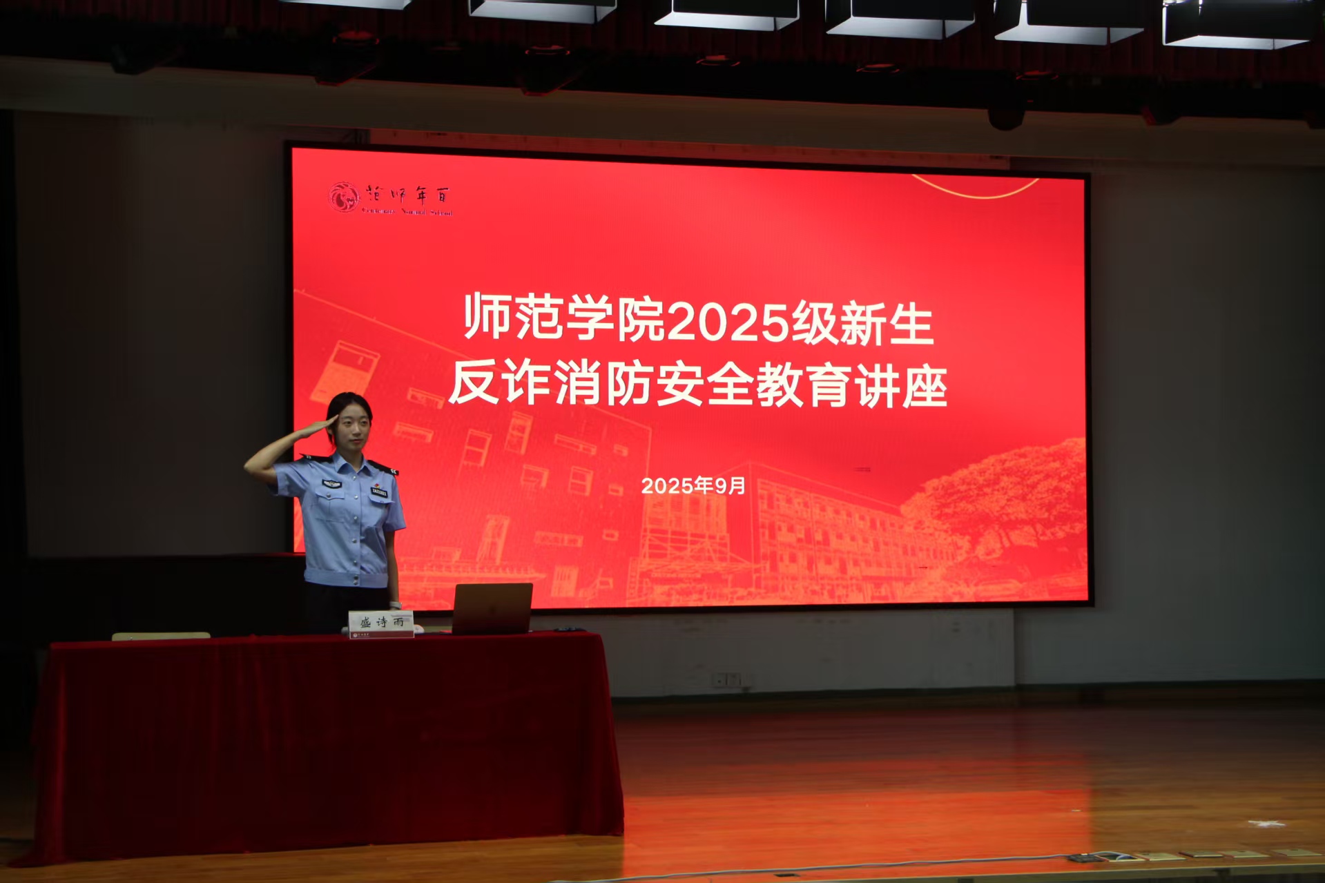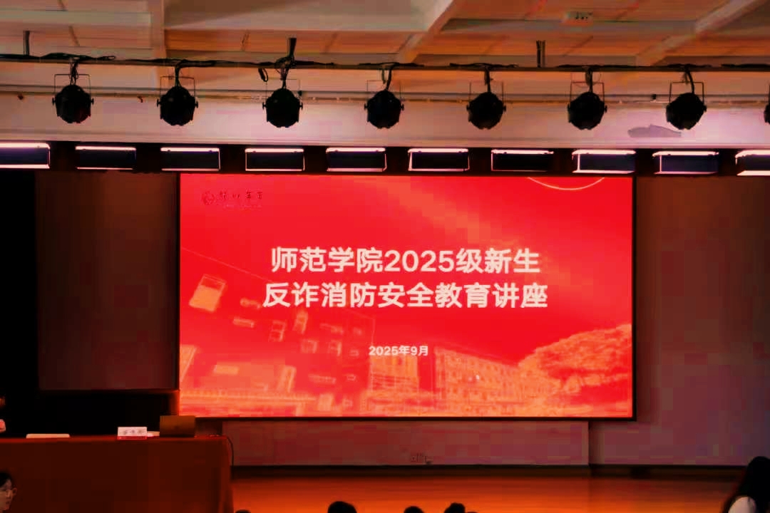 为切实提升学生对电信诈骗和消防安全的认知水平,强化反诈意识,夯实消防安全知识储备,9月23日,师范学院组织2025级新生开展“新生反诈、消防安全教育”系列讲座。现场近1000名师范学院新生认真聆听讲解、积极参与互动,在沉浸式学习中筑牢校园安全“思想防线”。
