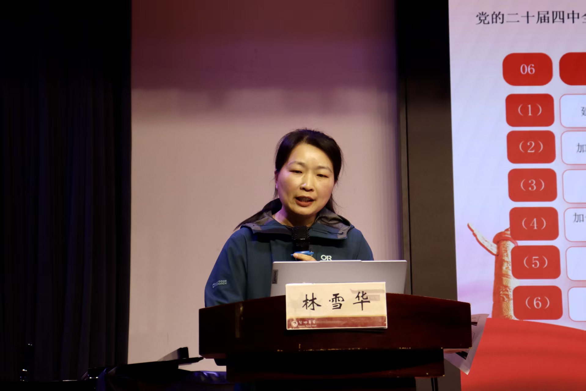 林雪华作题为《学习贯彻党的二十届四中全会精神,争做新时代有为青年》的开班第一课。她结合党的二十届四中全会提出的新概念、新观点、新论断,为同学们讲解全会精神中的教育使命密码。结合参加西部支教学姐胡廷范和“全国最美教师”祝响响主动调任山区,将全部精力倾注到山区孩子身上,为学员们讲解了三重师者素养:一是以“对党忠诚”筑牢育人信念;二是以“过硬本领”夯实从教根基;三是以“仁爱精神”涵养师者初心。最后,林雪华为同学们指明了师范青年践行全会精神,聚焦“师德养成”“能力提升”和“服务基层”的三大路径,呼吁学员们通过师德案例研讨、技能竞赛和基层实践,将全会精神转化为行动。