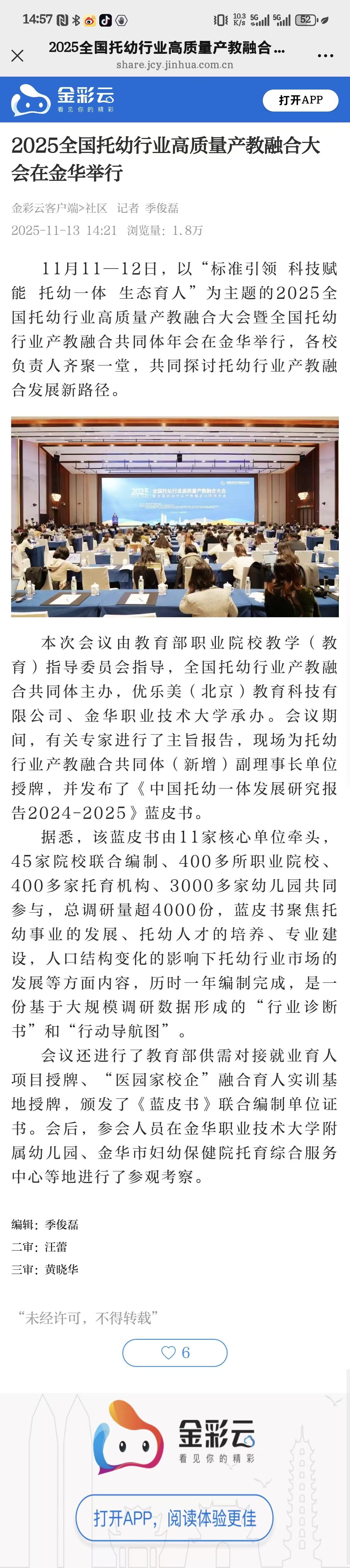 金彩云:2025全国托幼行业高质量产教融合大会在金华举行
