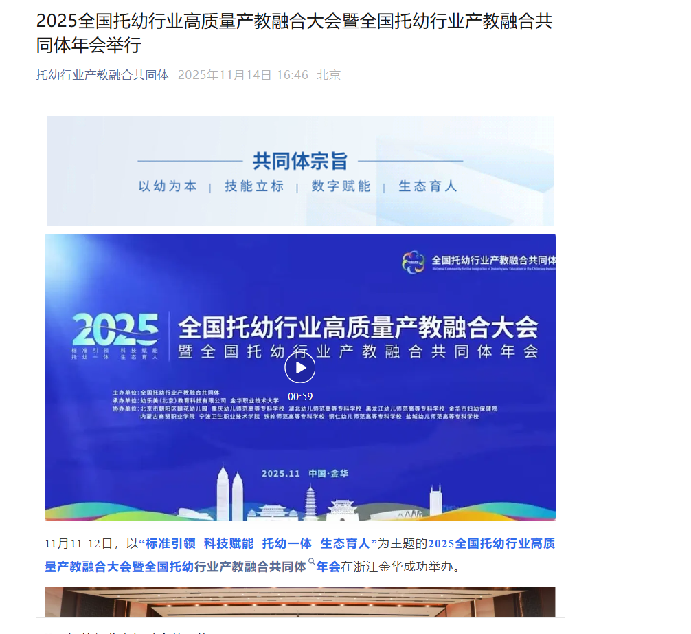 托幼行业产教融合共同体:2025全国托幼行业高质量产教融合大会暨全国托幼行业产教融合共同体年会举行
