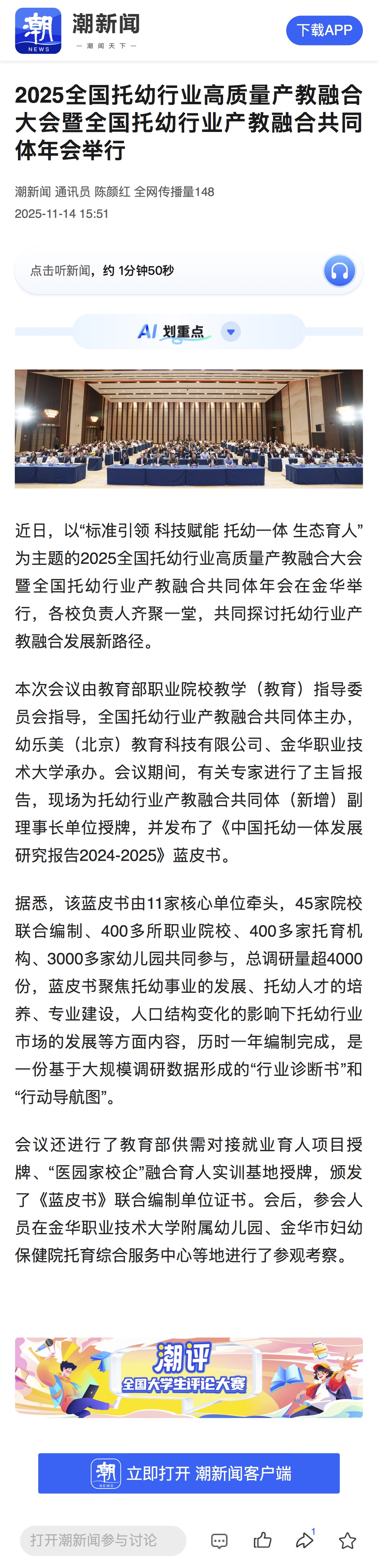 潮新闻:2025全国托幼行业高质量产教融合大会暨全国托幼行业产教融合共同体年会举行
