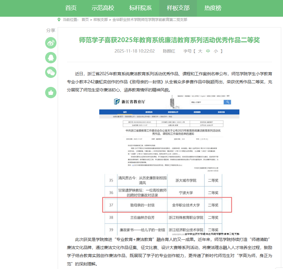 全国高校思想政治工作网:师范学子喜获2025年教育系统廉洁教育系列活动优秀作品二等奖