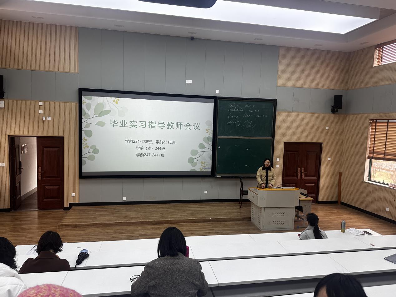 为推进2026届毕业生实习工作安排的落实,明确指导教师职责,1月26日,我院学前教育专业于西教4-418教室召开了2026届毕业实习指导教师会议。学前教育专业相关负责人、全体指导教师以及毕业班班主任等相关人员出席了此次会议。