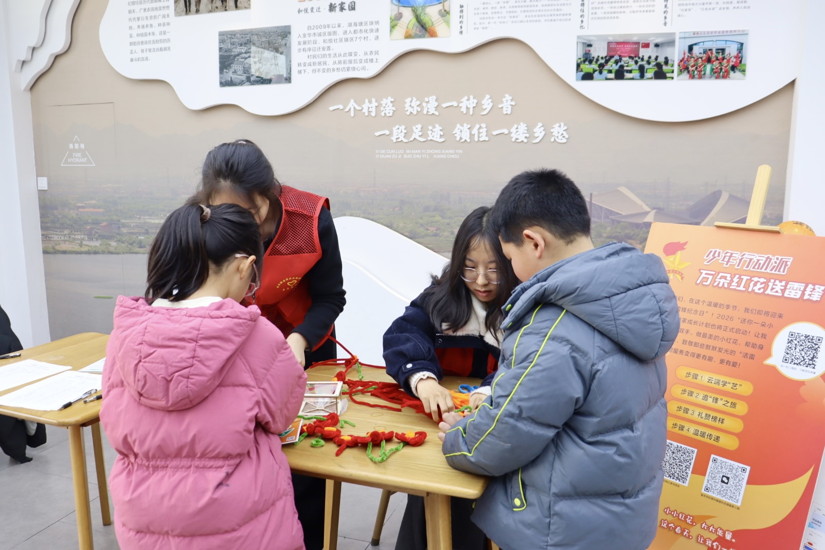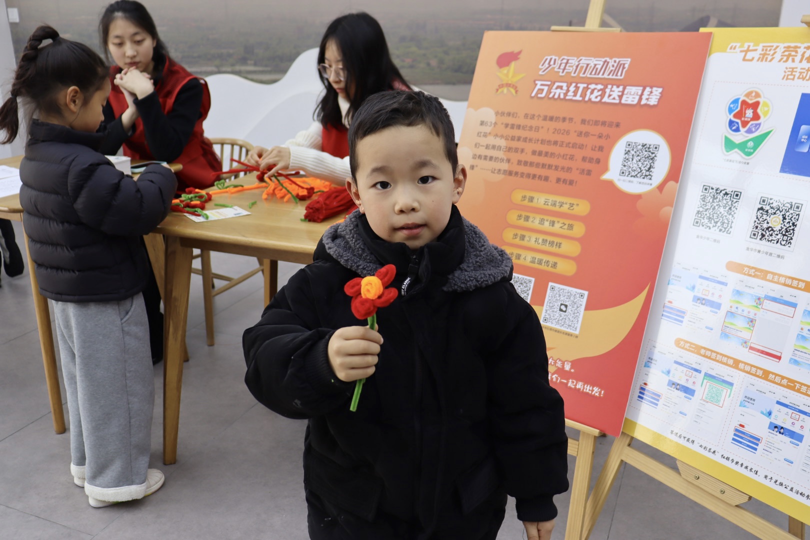 活动伊始,志愿者们耐心指导孩子们用五颜六色的扭扭棒制作小红花。扭一扭、弯一弯、固定成型,一朵朵鲜艳的小红花在稚嫩的小手中绽放。制作过程中,志愿者用生动形象的语言讲述雷锋叔叔助人为乐的故事,引导小朋友学习雷锋勤俭节约、刻苦钻研的精神。“我要像雷锋叔叔一样帮助别人!”一位小朋友举着自己做的小红花兴奋地说道。